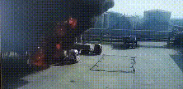 初步了解,是装车台装完车后取样时发生燃爆,原因是违章作业,由司机进行取样,静电导致。
