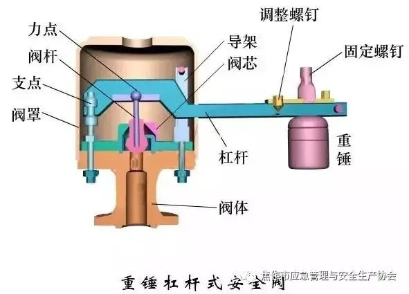 工作温度高而压力不太高时选用杠杆式较合适;高压设备宜选用弹簧式;一般常用的是弹簧式安全阀。