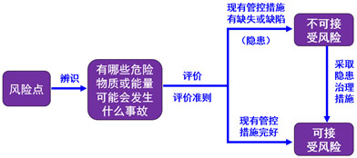 第一个过程即第一个目的——“辨识”,辨识风险点有哪些危险物质和能量(这是导致事故的根源),辨识这些根源在什么情况可能会导致什么事故。