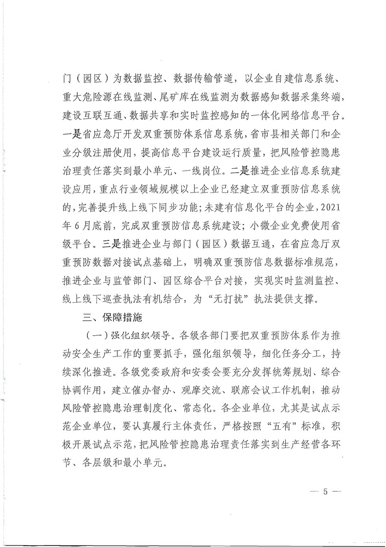 需要注意的是,为推进信息系统智能化高效化,建设互联互通、数据共享和实时监控感知的一体化网络信息平台,在各级应急管理系统和相关部门、企业分级注册使用的前提下,推进企业信息系统建设应用,未建有信息化平台的企业,2021年6月底前需完成双重预防信息系统建设,且小微企业免费试用省级平台。