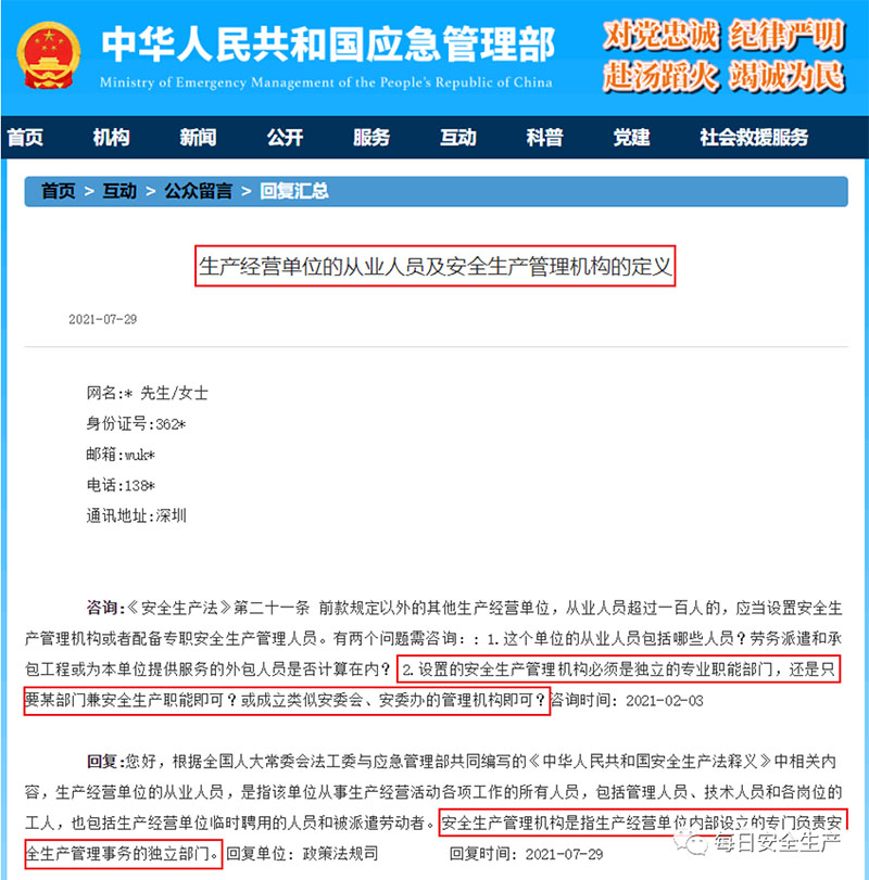 官方明确答复:企业安全生产管理机构必须作为独立部门设置。