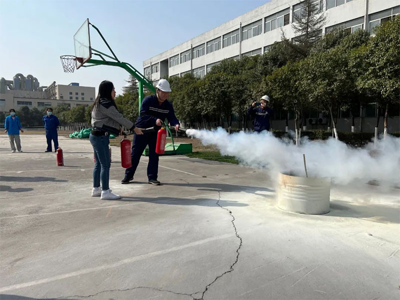 为增强员工安全意识,提高对火灾扑救应急处置能力,正确使用消防器材,2022年3月10日下午焦作健康元生物制品有限公司安全部组织行政楼各职能部门员工(包括餐厅、宿舍和丽珠合成、上海丽珠)80余人,在公司篮球场组织了进行了消防器材实操培训演练。公司义务消防队队长崔金贵对干粉灭火器、二氧化碳灭火器和消防水带枪头的使用方法进行了认真详细的讲解示范,并不厌其烦地手把手指导了参培训人员实际操作。各部门领导高度重视带队参加,各部门员工分批轮流使用灭火器进行实操灭火演练,随后各部门员工又踊跃进行了接消防水带的练习。