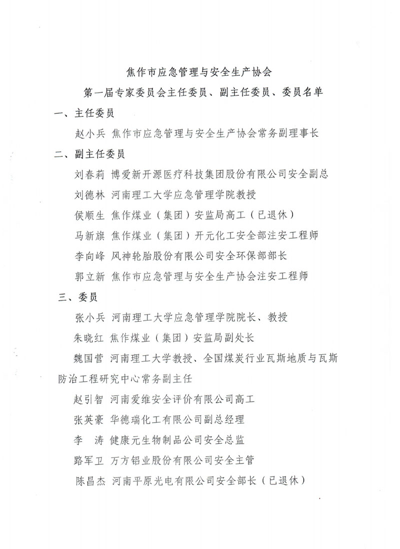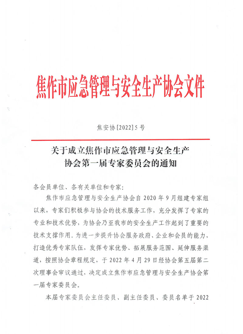 关于成立焦作市应急管理与安全生产协会第一届专家委员会的通知